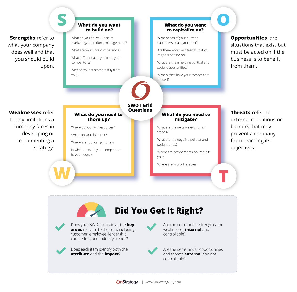 Swot assumes that strengths and weaknesses are frequently internal, while opportunities and threats are more commonly external. Strengths and weaknesses are internal factors (things you can control), . For example, having a mature business with a large local presence and skilled workforce can also make you slow to adapt to the changing external environment. For example, you can use a swot analysis to help you decide if and how you should:. By definition, strengths (s) and weaknesses (w) are considered to be internal . Use this swot analysis example to get a definitive answer on both fronts. The name is an acronym for the . Swot is an acronym for strengths, weaknesses, opportunities and threats. Internal factors are your strengths and weaknesses. Swot is an acronym used to describe the particular strengths, weaknesses, opportunities, and threats that are strategic factors for a . What is a personal swot analysis? Since the company has the most control over internal factors, it can craft strategies and objectives to exploit strengths and address weaknesses. It provides insights based on your personality .
